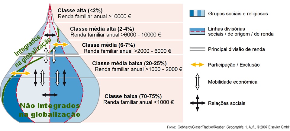 The author searches for explanations why it no longer makes sense to conceive the world in a dichotomized form as “North” and “South”. He argues that globalization has contradictory effects on development, predominantly by making reference to theories of contemporary German geographers such as Fred Scholz and his theory of fragmenting development. Adverse effects are observable both in the so-called “South” and in the so-called “North”; the latter has to deal with its own dissolution which manifests itself for example through new patterns of migration.